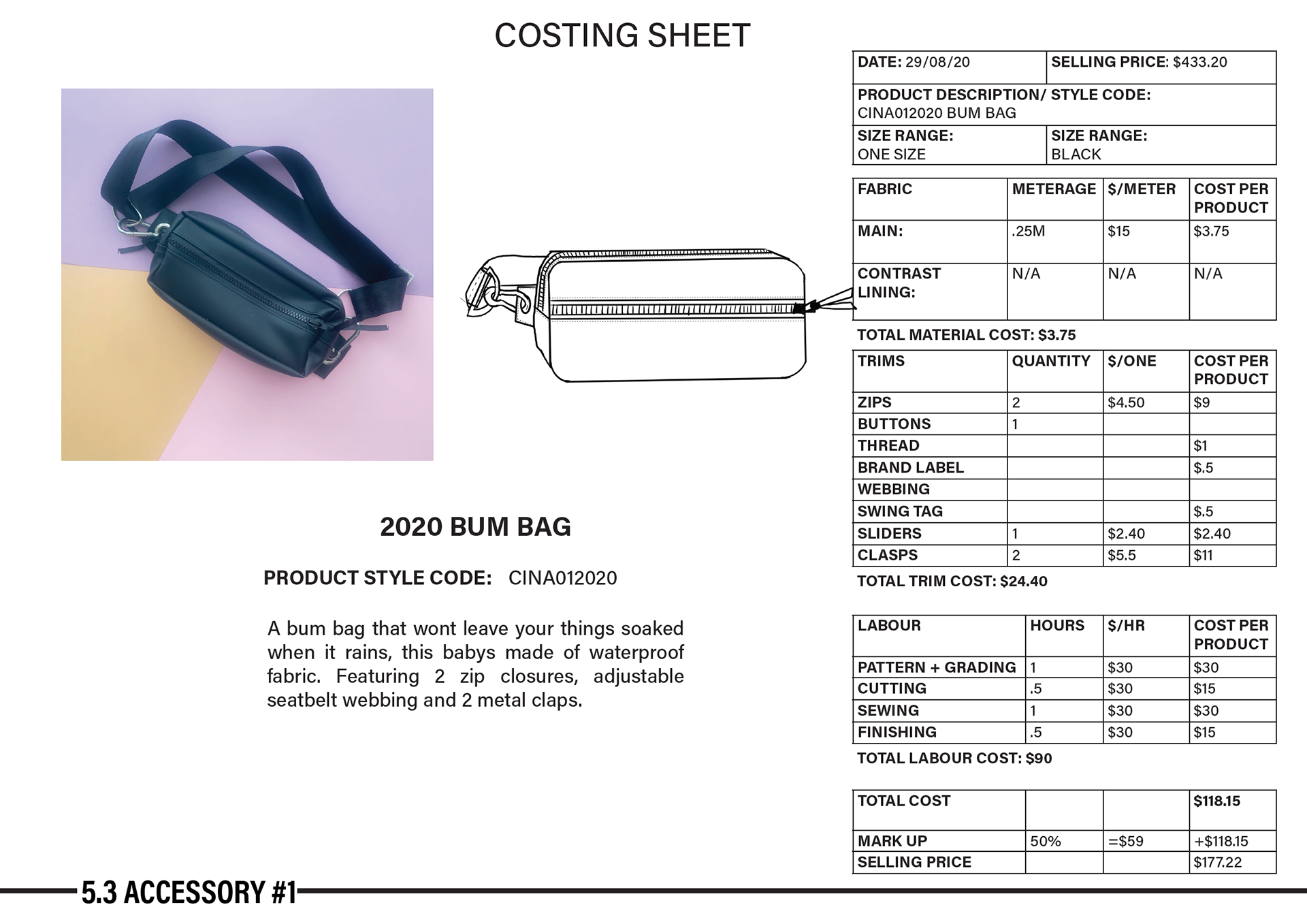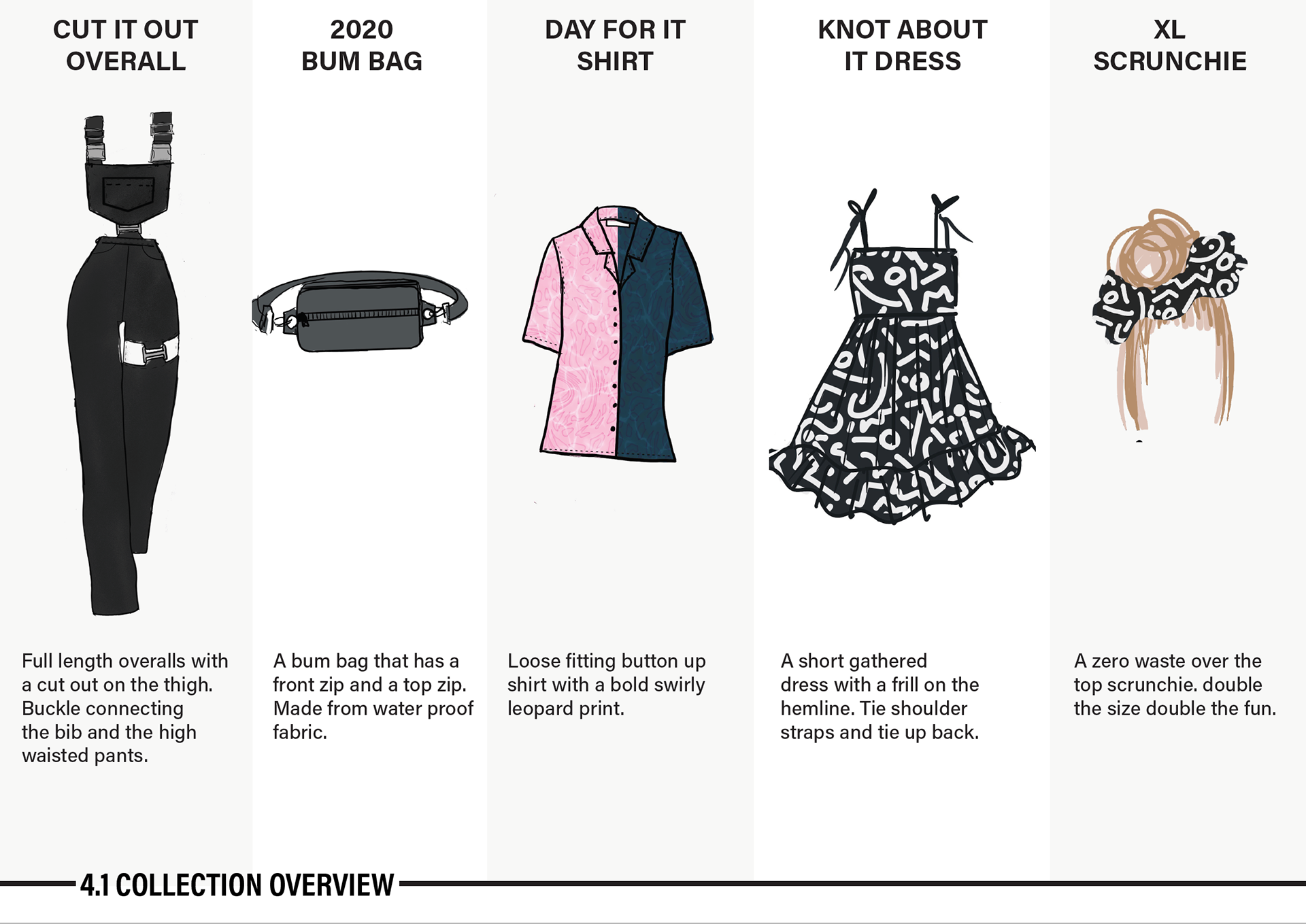 This project was within my university degree in my third year. The task was to create 3 garments and two accessories that would be easy to sell commercially and fit within your design aesthetic.